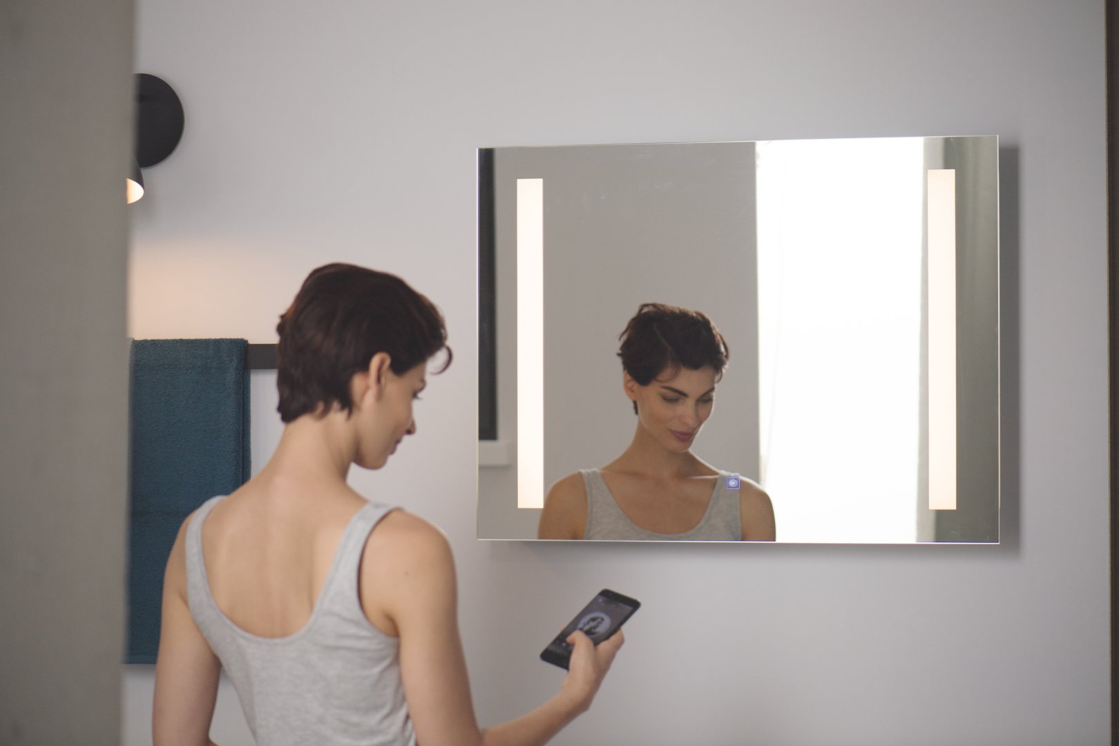 - Dans un style tout aussi épuré, les miroirs dotés de leur propre système d'éclairage intégré, parfois connectés et programmables, ils propulsent votre salle d'eau dans le futur !