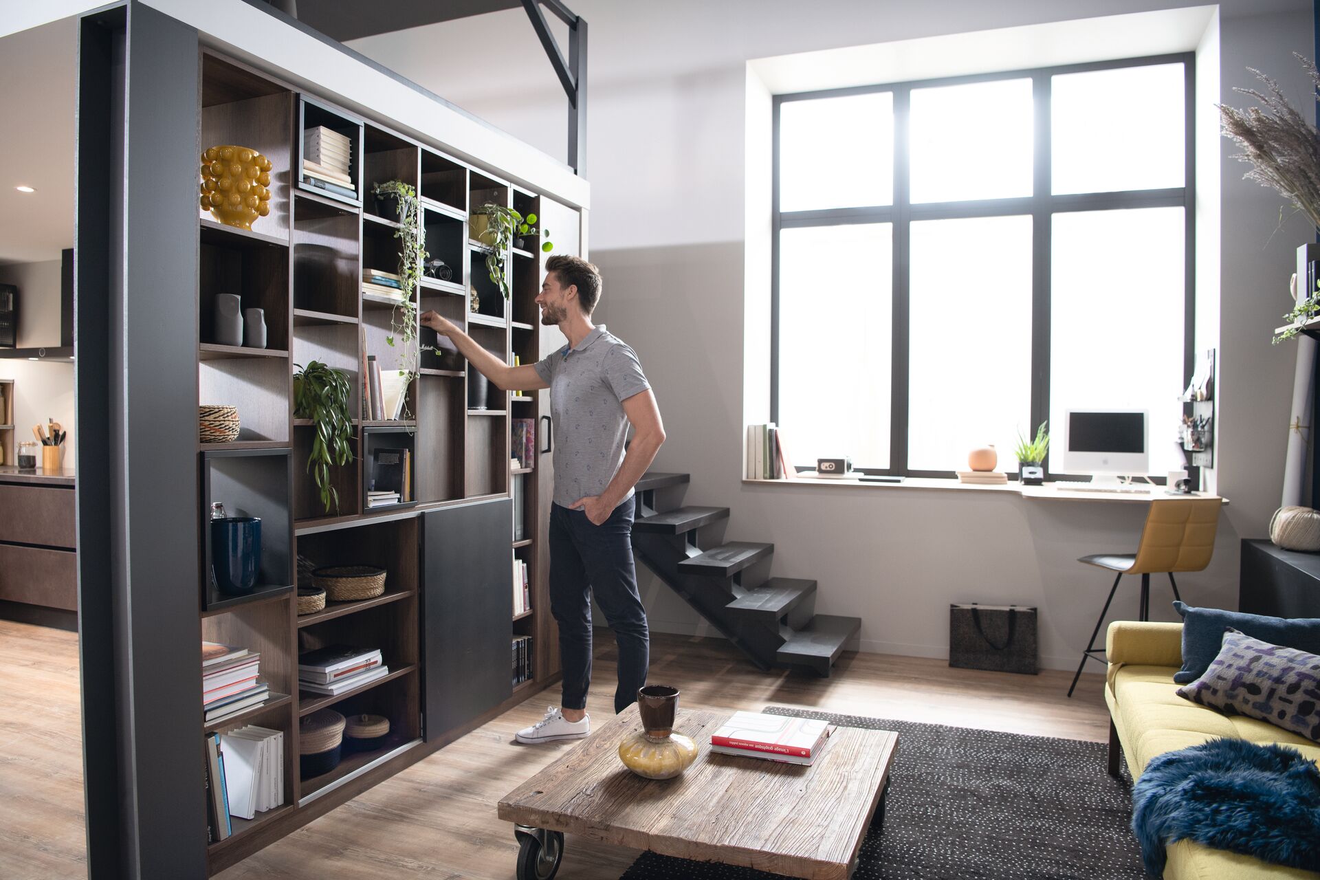 Maison, appartement ou studio : tous les espaces peuvent accueillir une bibliothèque, qu’ils soient petits ou grands. Dans un studio, elle peut servir de cloison pour délimiter les zones, notamment pour séparer le coin chambre du coin salon - salle à manger. Dans un appartement, elle sera parfaite pour habiller un mur ou un couloir. Et dans une maison, on l’utilise pour optimiser les espaces inutilisés, par exemple sous un escalier ou en mezzanine si on a de la hauteur sous plafond.