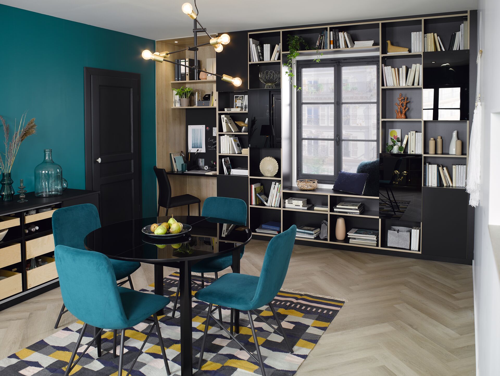 Côté couleur, pourquoi ne pas opter pour une bibliothèque colorée et pleine de pep’s ? Alternez les coloris des façades et des chants pour plus d'inspiration et glamour. Lassé des bibliothèques à la forme traditionnelle ? Vous pouvez également choisir de donner une composition déstructurée à votre bibliothèque en plaçant vos façades et vos étagères à des hauteurs différentes. Effet garanti !
