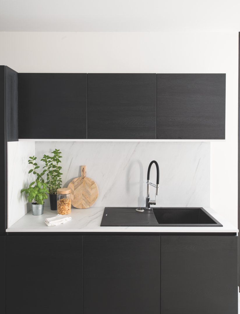La cuisine épurée se travaille d’abord au niveau des couleurs. Le minimalisme est alors de rigueur : choisissez-en une, voire deux, pour composer les façades de vos meubles ainsi que les éléments de déco comme la crédence. Si le blanc est idéal pour apporter de la luminosité et agrandir les petites cuisines, vous pouvez également opter pour des textures naturelles comme le bois ou la pierre. Un plan de travail décor marbre pour votre îlot est par exemple tout à fait indiqué.