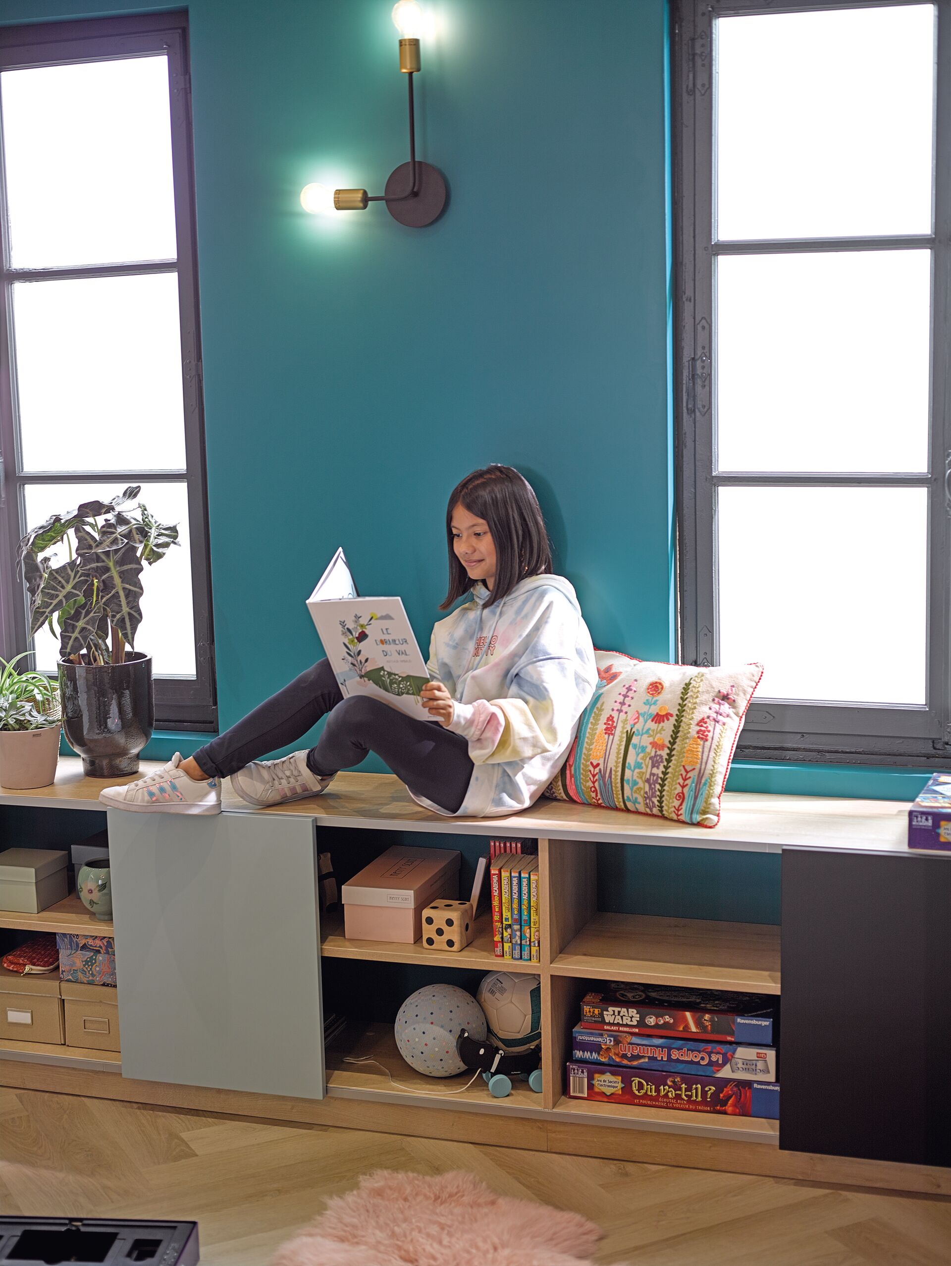 Les bébés ont grandi : plutôt que de les laisser déménager leur chambre dans le salon tous les jours, imaginez-leur un coin jeux dans la pièce de vie ! Une zone à eux qui devra concilier leurs envies et les vôtres… Délimiter l'espace sera votre première mission : n'hésitez pas à bien en marquer les limites pour ne pas être envahi par les jouets. Peinture du mur ou du soubassement, pose d'un papier peint contrastant, mise en place d'un revêtement de sol différent, installation d'une estrade, tout est possible suivant la place dont vous disposez ! Notre conseil : plus cosy, un angle de la pièce sera toujours apprécié par les enfants, car il est plus facile d'y installer les jouets, de s'y asseoir confortablement pour bouquiner, de s'y fabriquer une cabane… et cela permet de circonscrire plus facilement la zone.