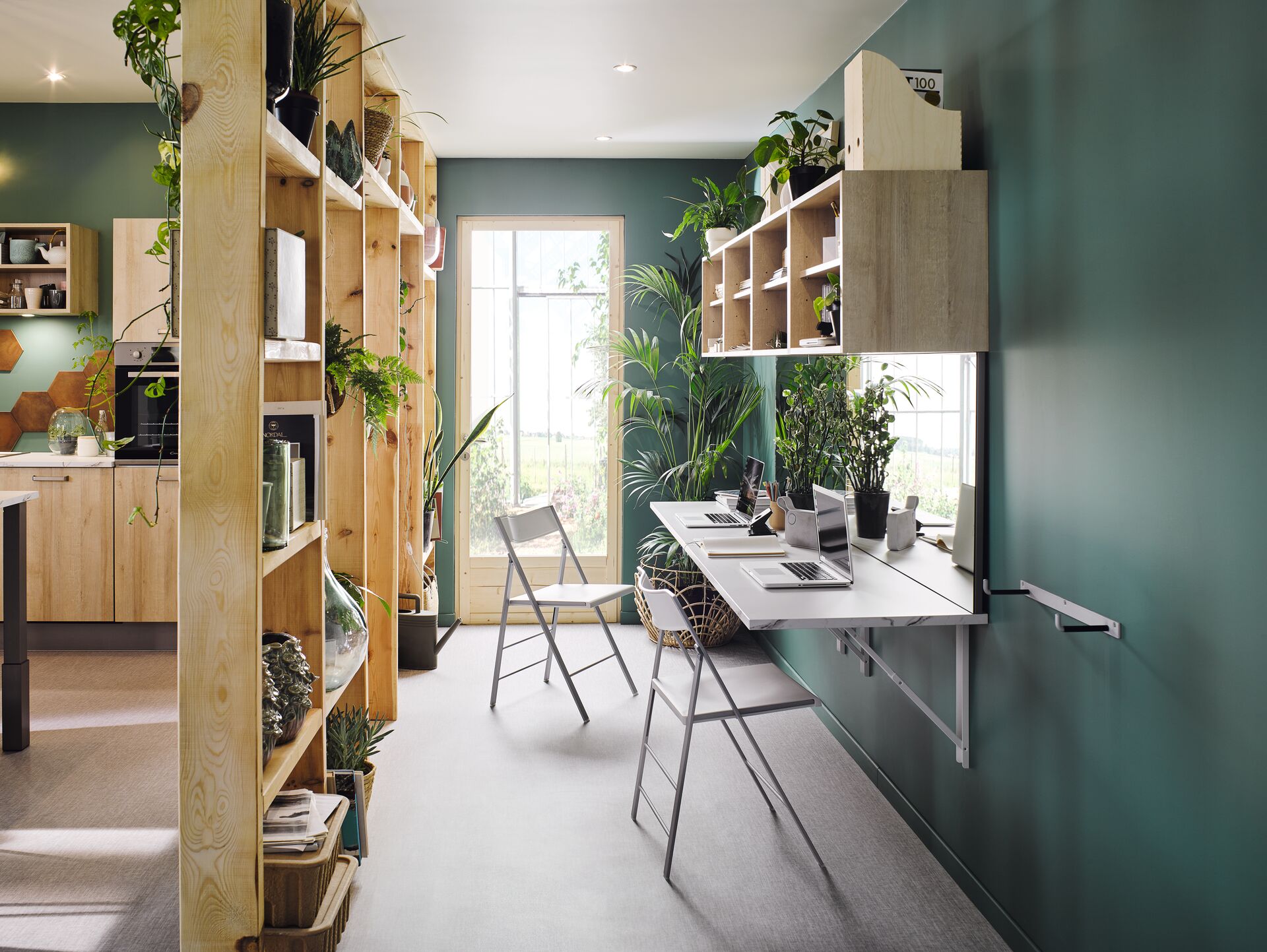 Solution de télétravail Cuisinella avec tables rabattables et caissons de rangement Darwin