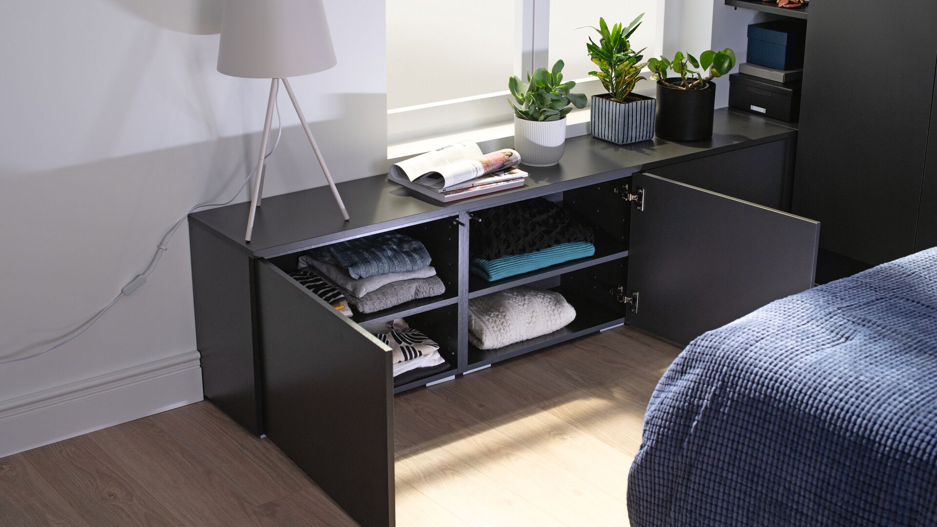 Et si la tête de lit n’était pas seulement décorative, mais aussi un espace de rangement ? Découvrez nos idées pour gagner de la place dans la chambre en combinant tête de lit et dressing.