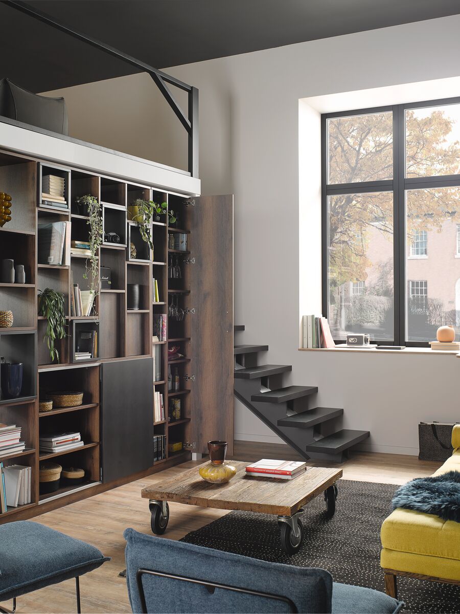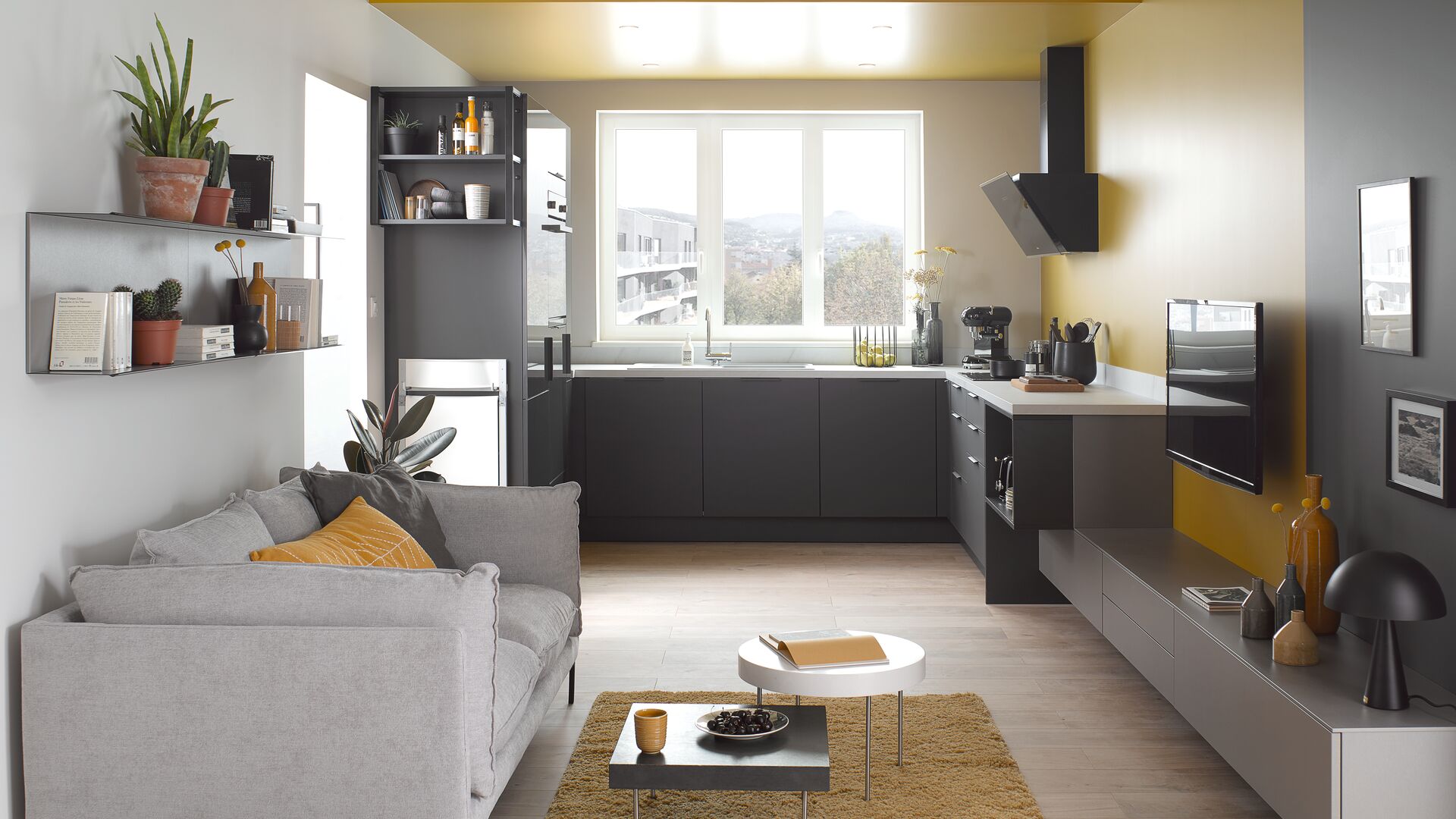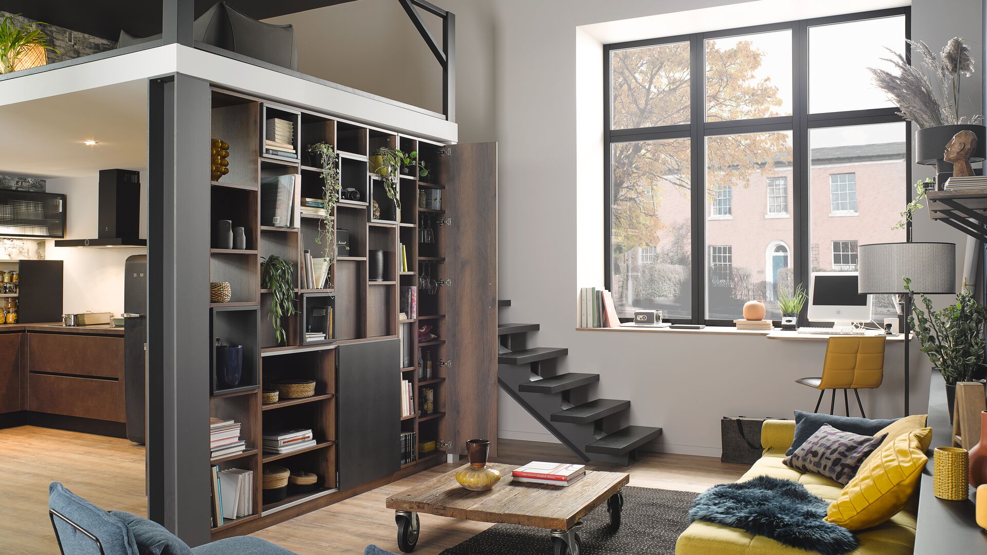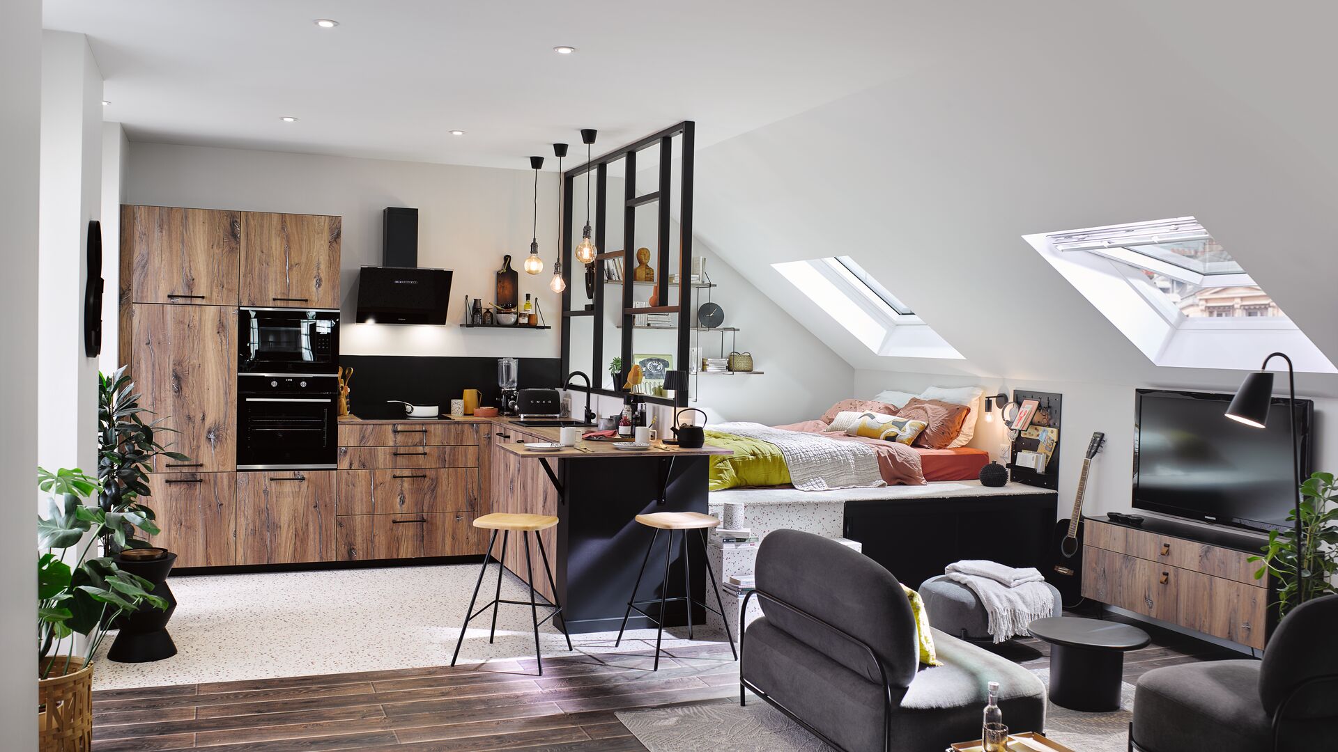 Dans certains cas, séparer les deux zones peut permettre une meilleure optimisation de l'espace. Par exemple, une bibliothèque double face ou un îlot central constituent des solutions de rangement supplémentaires efficaces, comme des meubles de cuisine classique, tout en délimitant les espaces de manière fonctionnelle et plus originale.