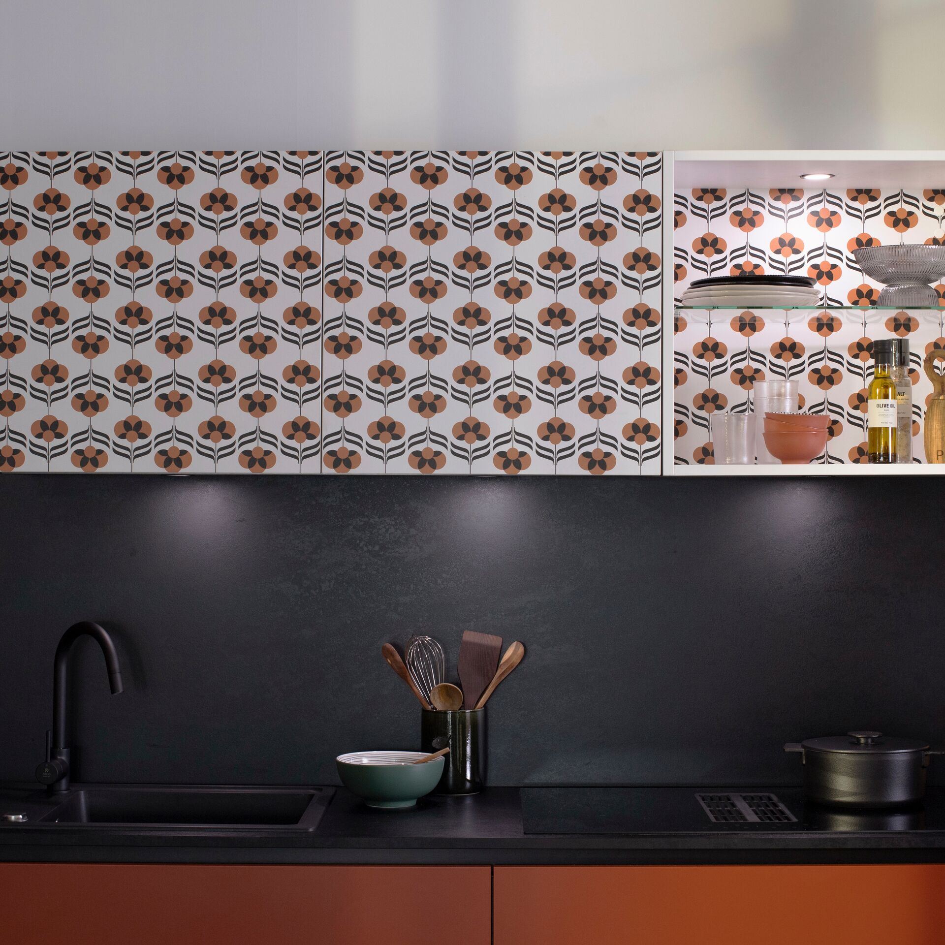 Certains motifs sont indissociables d’une cuisine rétro. Que vous préfériez les décors tropicaux, les formes géométriques à tendance psychédélique ou la multiplication de petits motifs floraux, la gamme de décors PIMP vous permet de coordonner votre décoration de cuisine. Vous pouvez en effet opter pour le même motif en façades, fond de meuble et crédence, afin d’installer un style rétro avec raffinement.