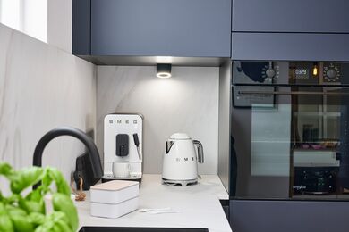 Dans une cuisine minimaliste, l'électroménager s'efface au profit des lignes épurées. Les appareils trouvent leur place dans des rangements dédiés, comme les colonnes techniques qui accueillent fours et micro-ondes. Le petit électroménager se range aisément dans des placards spécialement aménagés, équipés de prises intégrées pour plus de praticité.