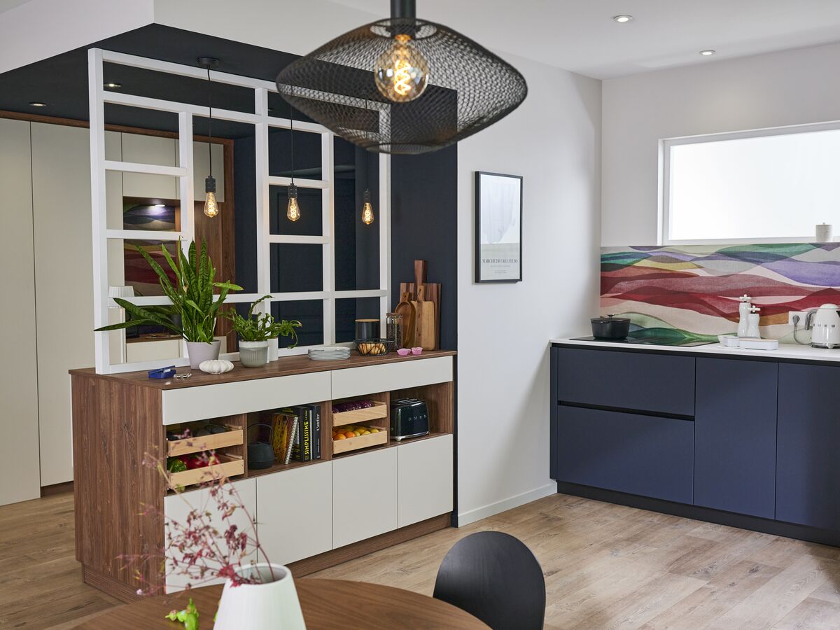 Cette cuisine bleu nuit et blanc incarne notre engagement pour un habitat durable et fonctionnel. Fabriquée selon des normes strictes, elle représente l'excellence du savoir-faire français tout en répondant aux exigences environnementales actuelles.