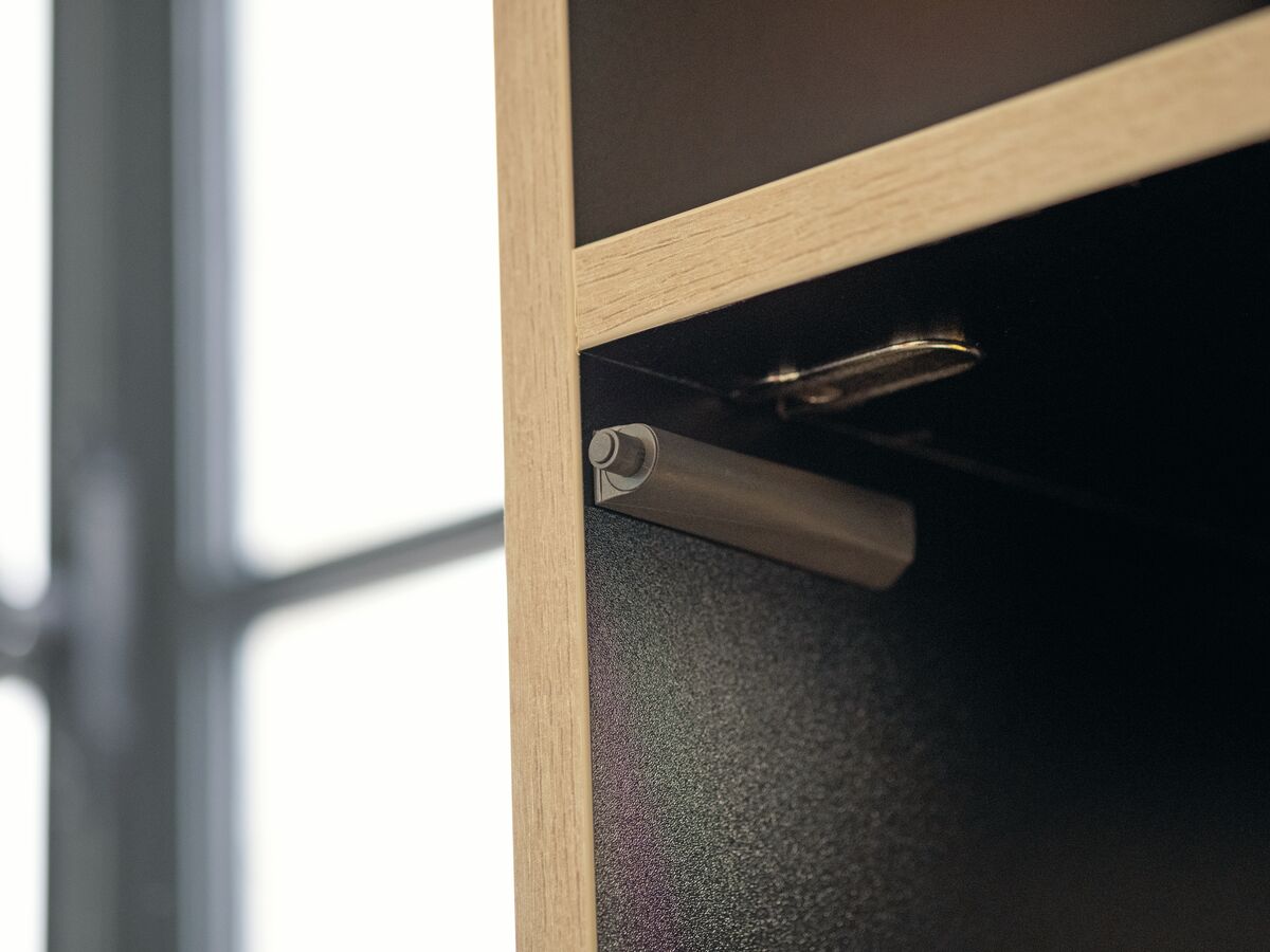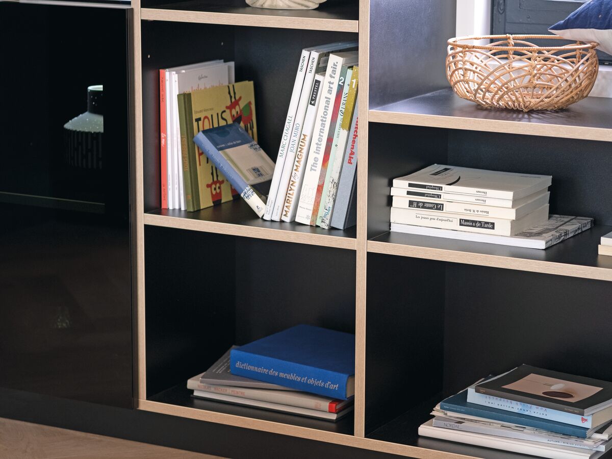 Pour optimiser vos rangements dans le salon, rien de tel que le sur mesure. Ce meuble bibliothèque noir est pensé pour habiller un mur complet de votre pièce de vie. Toujours unique, il s'adapte à votre intérieur en couvrant tout le mur, ou en entourant une fenêtre ou un radiateur au besoin. Les dimensions des niches de cette bibliothèque murale, que vous pouvez choisir ouvertes ou fermées, avec façades pleines ou vitrées, sont également déterminées en fonction de vos besoins propres.
