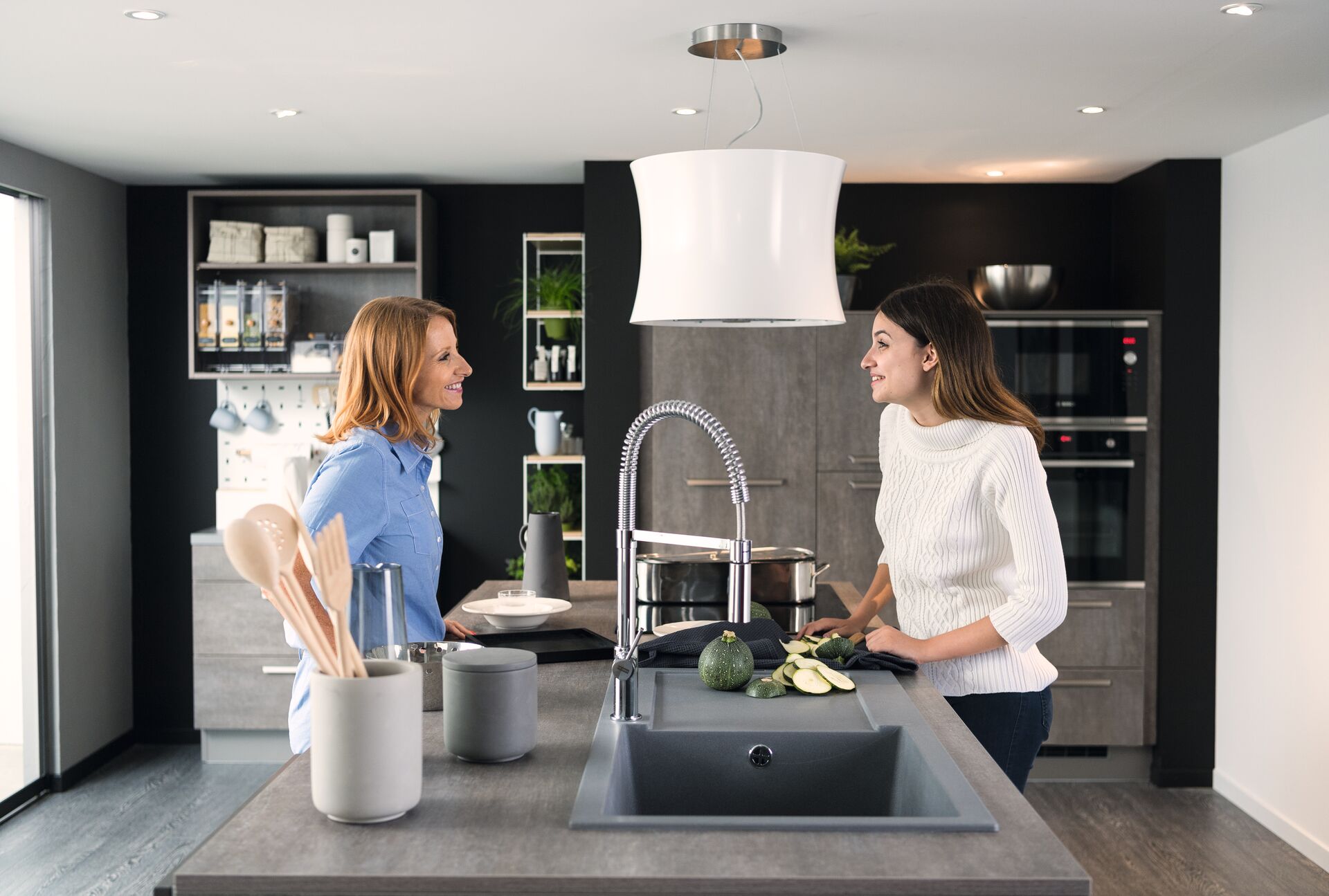 Quel que soit votre choix en matière de design, vous pouvez opter pour un modèle de hotte connecté. Grâce à ce système, la hotte sait lorsque vous allumez et éteignez la plaque de cuisson, et démarre alors automatiquement. Le débit de l’aspiration s’adapte également à la cuisson grâce à des capteurs thermiques.Je choisis un mode d’aspiration adapté à ma cuisine