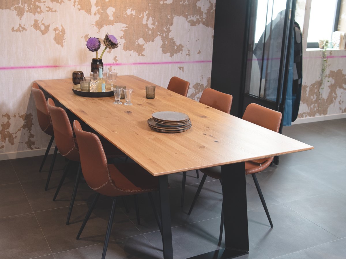 Avec son plateau en bois et ses pieds en métal noir, la table Bridgewood se révèle aussi accueillante que tendance. À la clef, une déco industrielle qui évoque l’atelier, mais aussi les grands restaurants avec leur vaste salle et leur esprit avant-gardiste, sans se départir de l’esprit convivial propre à la cuisine.