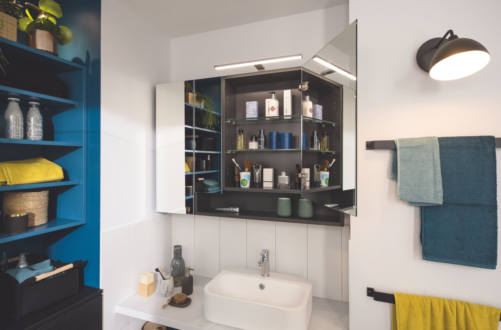 - un éclairage fonctionnel (lumière froide), dirigé vers un endroit bien précis : idéal pour se maquiller par exemple.