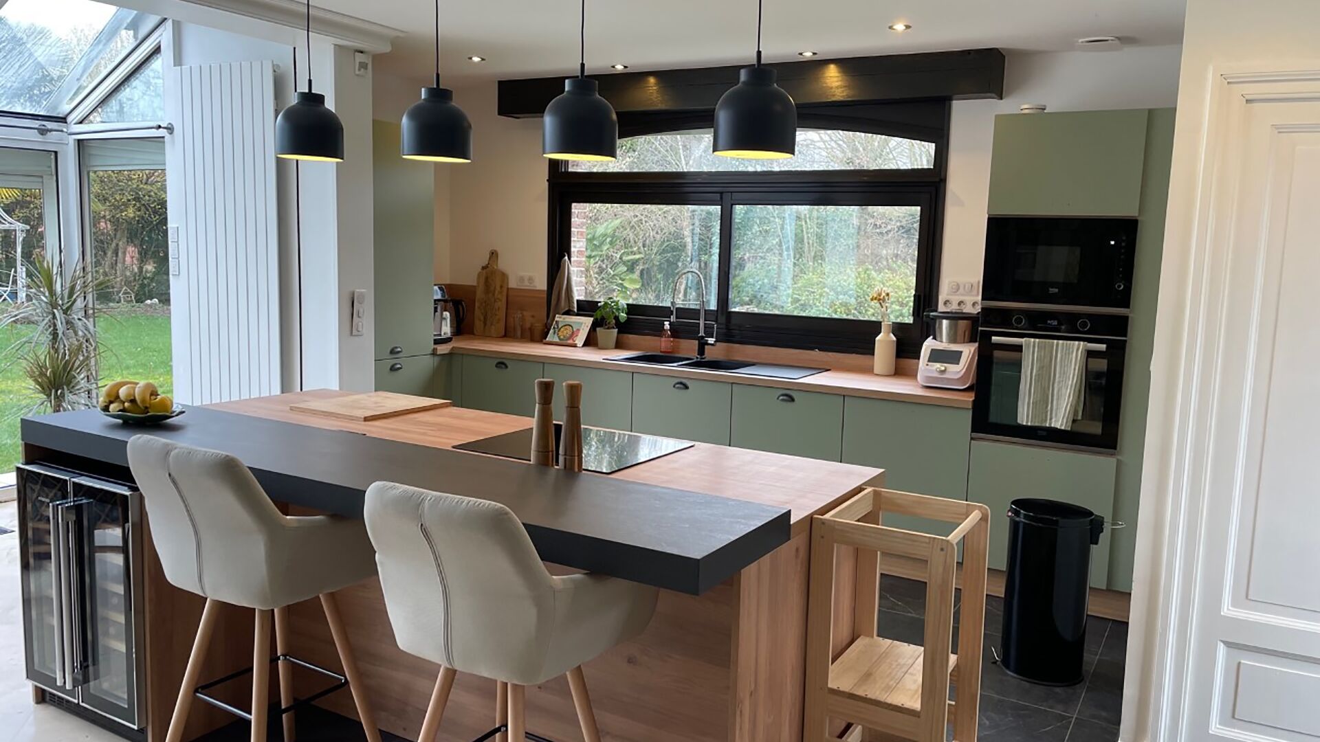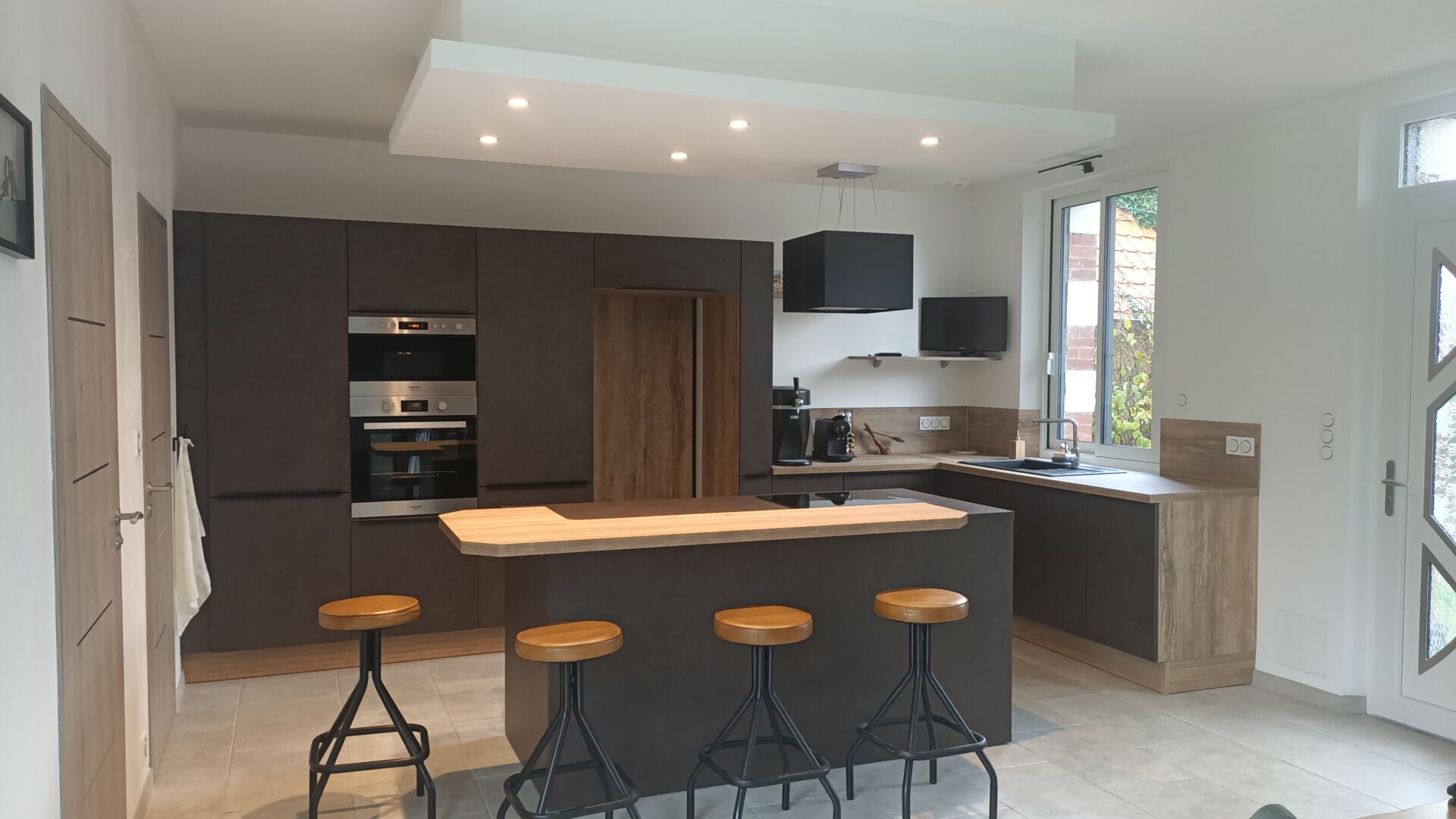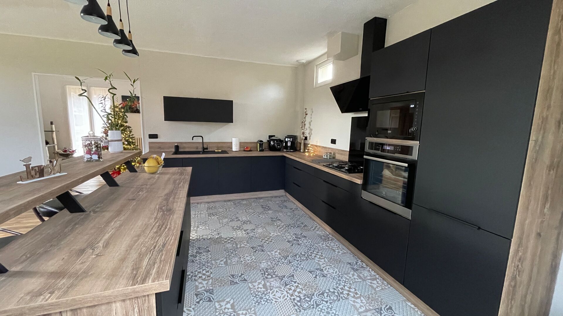 1/ Sylvain G. : une grande cuisine moderne en noir et bois