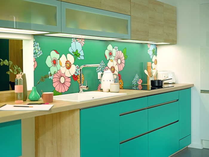 Crédence PIMP Cuisinella Happy Flower en collaboration avec Poulette Magique.