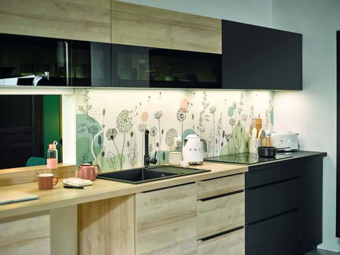 Choisir une crédence, c’est aussi l’occasion de personnaliser votre espace de manière originale. Avec les collections exclusives de Cuisinella, à l’instar de la gamme PIMP, vous pouvez créer une cuisine à votre image en choisissant parmi une sélection de décors tendance allant du look industriel au style vintage. Et que vous soyez plutôt fan de motifs géométriques ou de paysages apaisants, il y a forcément une crédence pour vous !