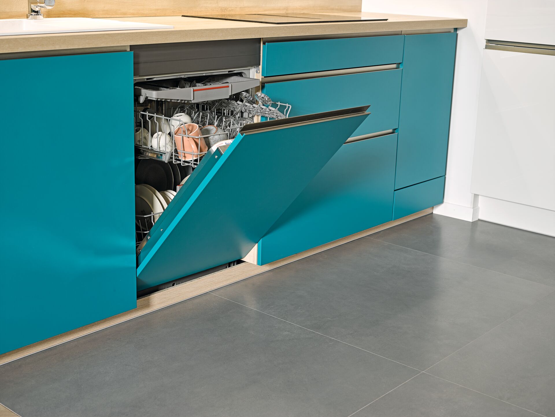 Cette esthétique minimaliste convient aussi particulièrement bien aux petites cuisines. En effet, l’absence de poignées permet d’alléger l’effet visuel de la pièce, qui paraît ainsi moins lourde et moins encombrée. Ainsi, si vous hésitez à choisir une cuisine avec ou sans poignées, pensez à prendre en compte les dimensions de votre pièce. En outre, si votre cuisine s’ouvre sur le salon, des façades sans poignées facilitent la transition visuelle entre l’une et l’autre pièce.