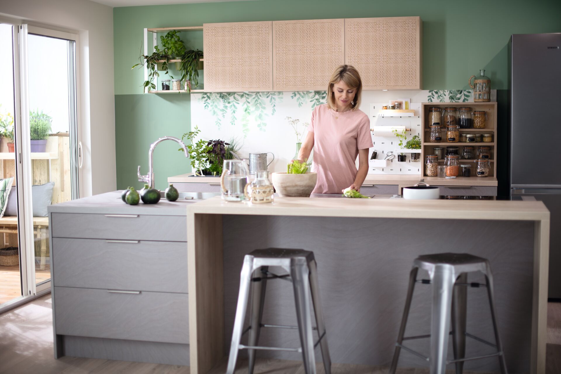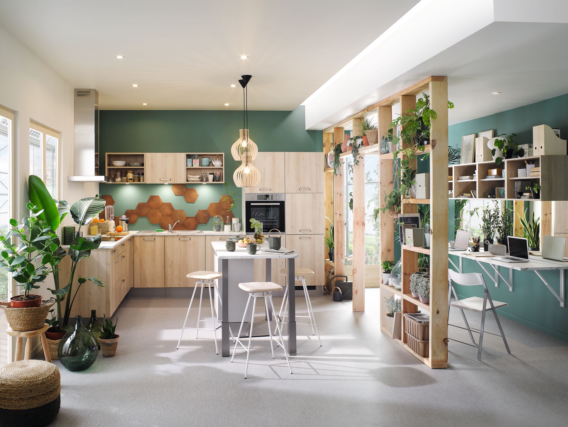 Les couleurs issues de la nature, comme le marron, le taupe ou l’ocre, seront en parfaite harmonie avec le vert, quelles que soient ses déclinaisons ! Ces couleurs complémentaires sont synonymes de raffinement, appliquées individuellement… Avec la couleur verte de votre cuisine, nature et modernité seront la patte de votre intérieur. Dans la tradition de la déco nordique, revisitée par cette touche contemporaine ! Pensez aussi à l’accord bois-vert en optant pour la cuisine Play Darwin ou le modèle Trend Edge Nordic Spirit & Color Kaki.