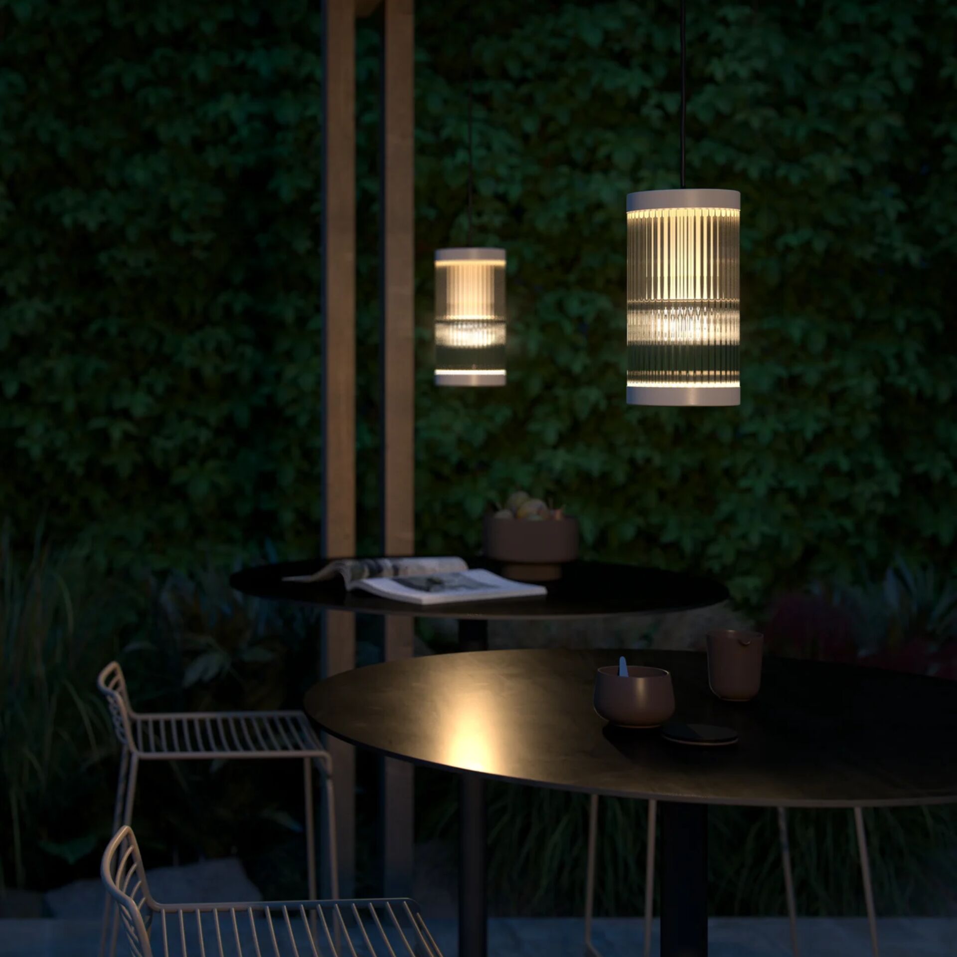 Comme en intérieur, les suspensions sont tout indiquées pour éclairer une table. Privilégiez des ampoules peu puissantes pour le confort visuel des convives, ou optez pour un abat-jour opaque.