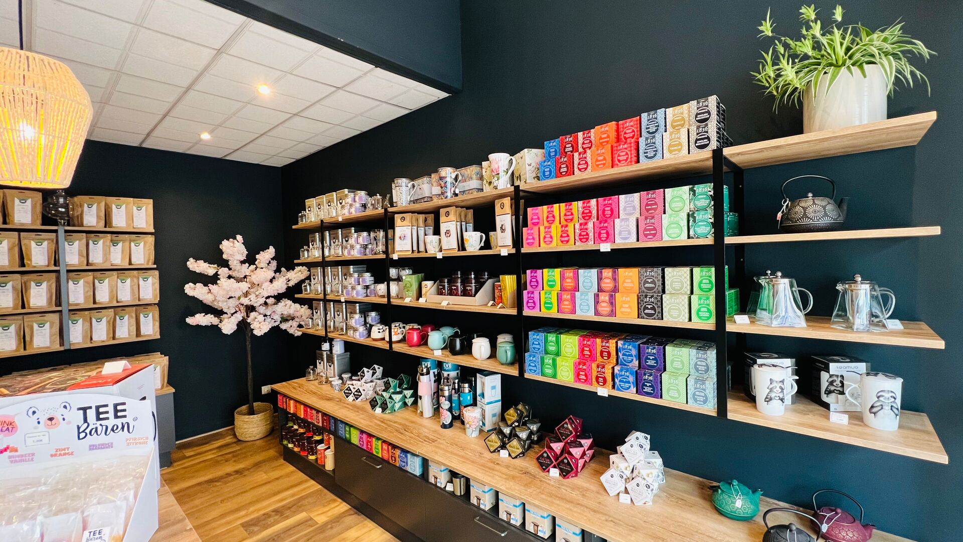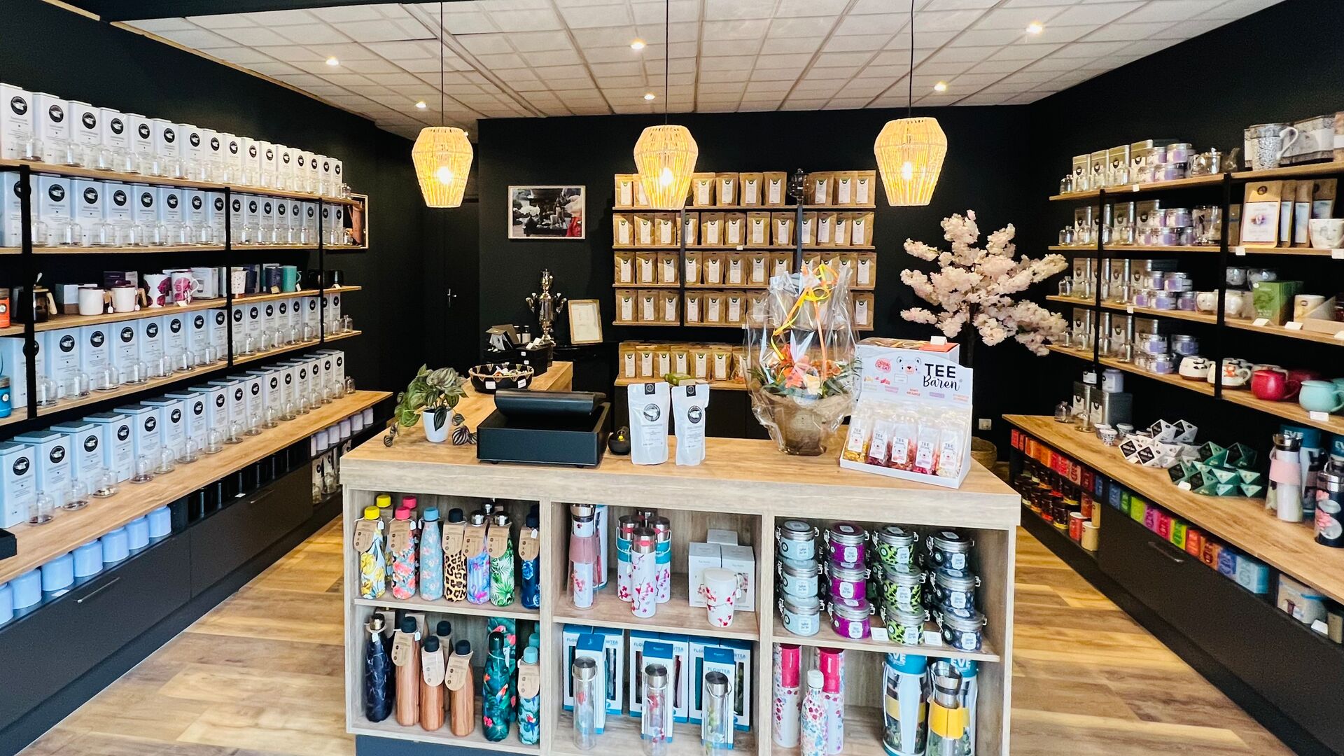 C’est une décoration et un style à la fois nature, affirmé et moderne qu’arbore ce magasin de thés et tisanes. La carte de l’harmonie est de mise par le biais de deux coloris ; le noir et le bois. Ils ornent à la fois les murs, sols et aménagement de cette boutique. Sur tout le pourtour du magasin sont implantés des meubles bas à tiroirs noirs, permettant le rangement du stock. Des étagères décor bois surmontent ces meubles et permettent la mise en avant des différents produits vendus. Au centre du magasin se dresse un beau comptoir avec un plan de travail épais décor bois, et des meubles ouverts. Les deux coloris choisis se répondent, se mettent aussi bien mutuellement en valeur que les produits qu’ils accueillent.