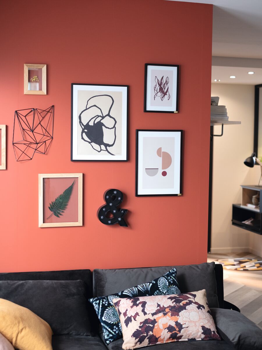 L’emplacement de votre cadre ou tableau peut transformer l’ambiance d’une pièce. Un cadre au-dessus du canapé se doit d’être centré et accroché à une hauteur où il s’intègre naturellement à l’espace de vie et aux volumes. Dans un grand couloir ou une entrée par exemple, une série de cadres peut créer un effet de galerie pour le moins arty !