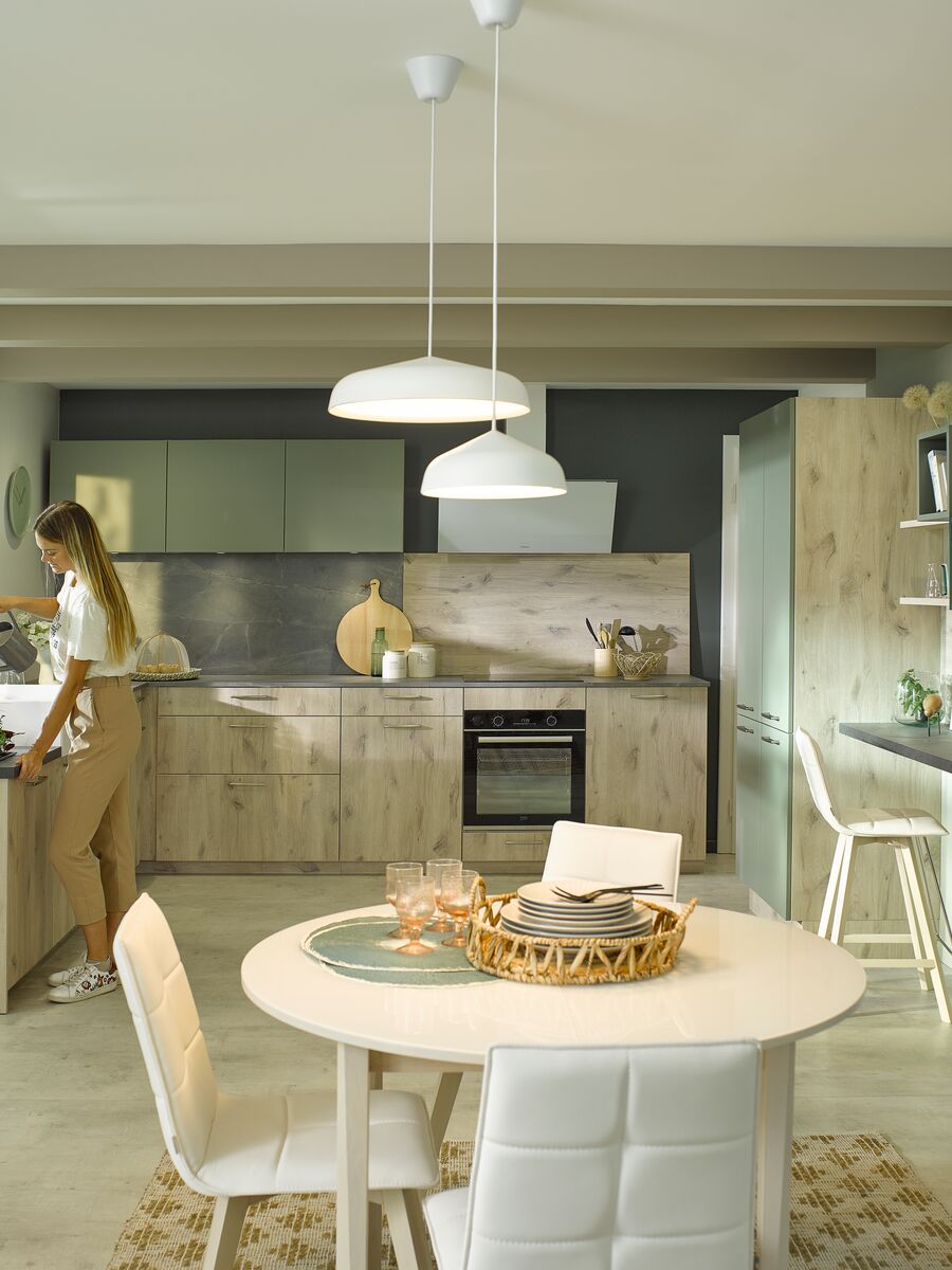 Imaginez un espace où chaque centimètre compte, où l’efficacité rencontre le style : bienvenue dans la cuisine en L ! Comme deux complices, les meubles et les différents équipements électroménagers s’alignent le long de deux murs pour former un angle hautement stratégique. C’est le terrain de jeu idéal pour les petits espaces cosy, où une table maline, pliante ou rétractable, aura aussi sa place pour se transformer en véritable atout gain de place.
