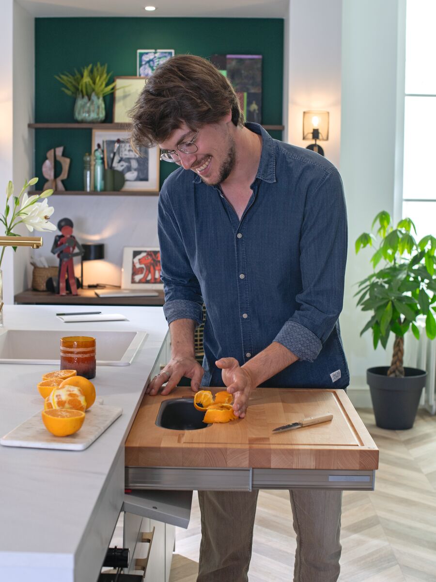 Et si on prenait un peu de hauteur ? Avec notre solution Ergoline, ajustez la hauteur de votre plan de travail pour une ergonomie optimale, que vous soyez grand et cherchiez à éviter de vous pencher, ou que vous visiez simplement plus de volumes avec près de 20 % de rangement en plus… C’est à la fois une révolution pour votre dos et pour votre espace de cuisine !