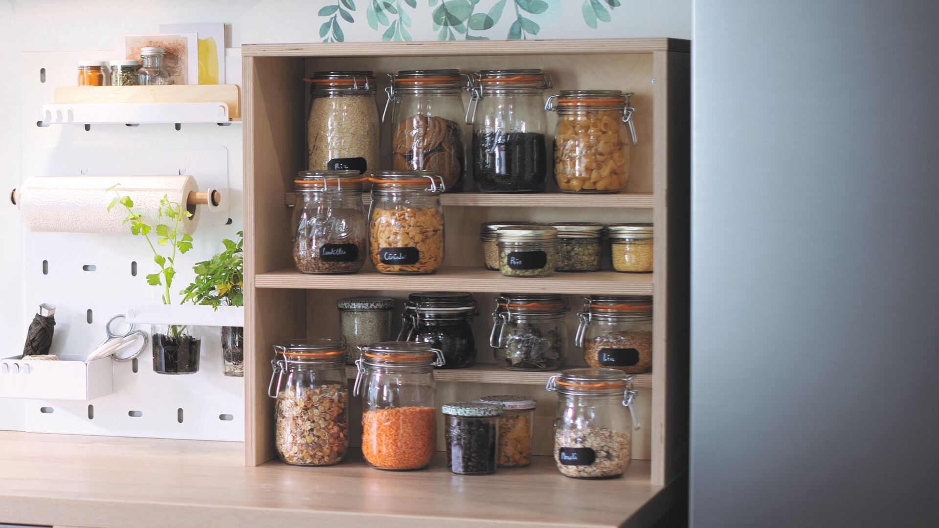 Utilisez des séparateurs de tiroirs modulables pour organiser les épices, les condiments et les aliments en conserve. Les bocaux en verre peuvent également être utilisés pour ranger les pâtes, le riz et autres stocks de céréales de manière esthétique et pratique.