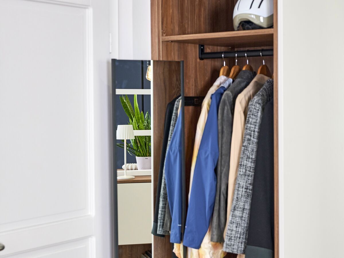 Pour maximiser l'utilité de chaque centimètre carré, misez sur des aménagements multifonctions. Un miroir pivotant peut être dissimulé dans l’espace penderie. Les portes intérieures peuvent accueillir des crochets. Ces petits aménagements malins transforment les espaces habituellement perdus en zones de rangement précieuses.