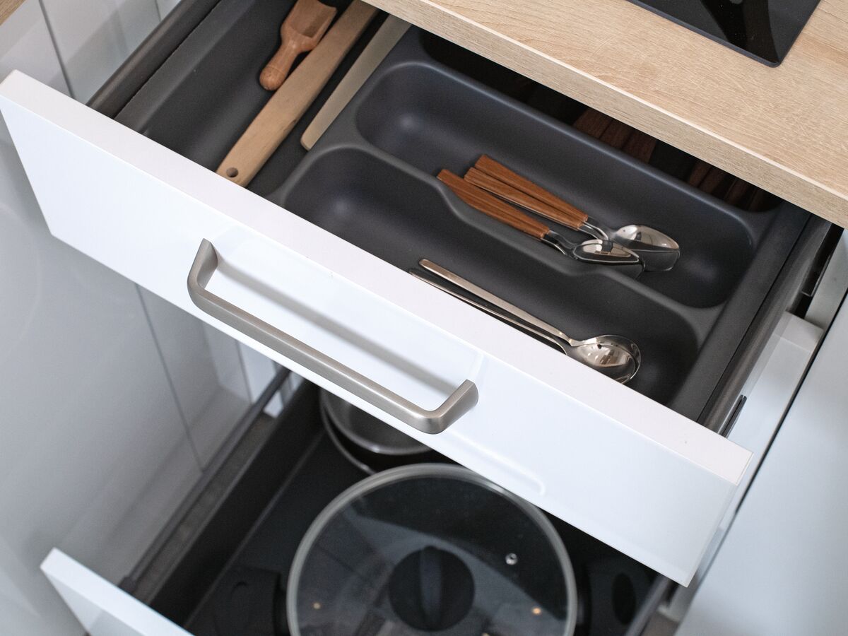 Détail de la cuisine blanche brillante