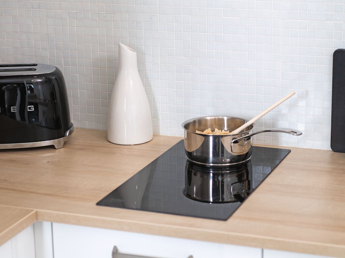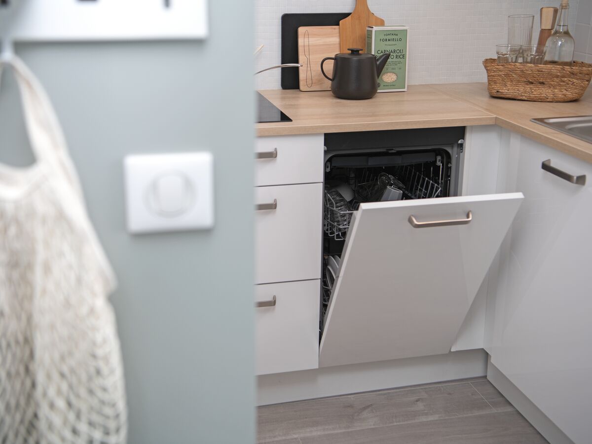 Pour composer avec un petit espace urbain, cette cuisine studio optimisée conviendra parfaitement. Idéale pour un studio ou un petit appartement, cette cuisine blanche a en effet été réduite à l'essentiel. Pour autant, tous les éléments ont été pensés pour ne souffrir d'aucun inconfort ! Domino de cuisson pour concocter vos plats préférés, lave-vaisselle peu encombrant (d'une largeur de 45 cm) afin d'éviter de laver la vaisselle à la main, un meuble haut pour disposer un micro-ondes sans gaspiller de volume au niveau du plan de travail…