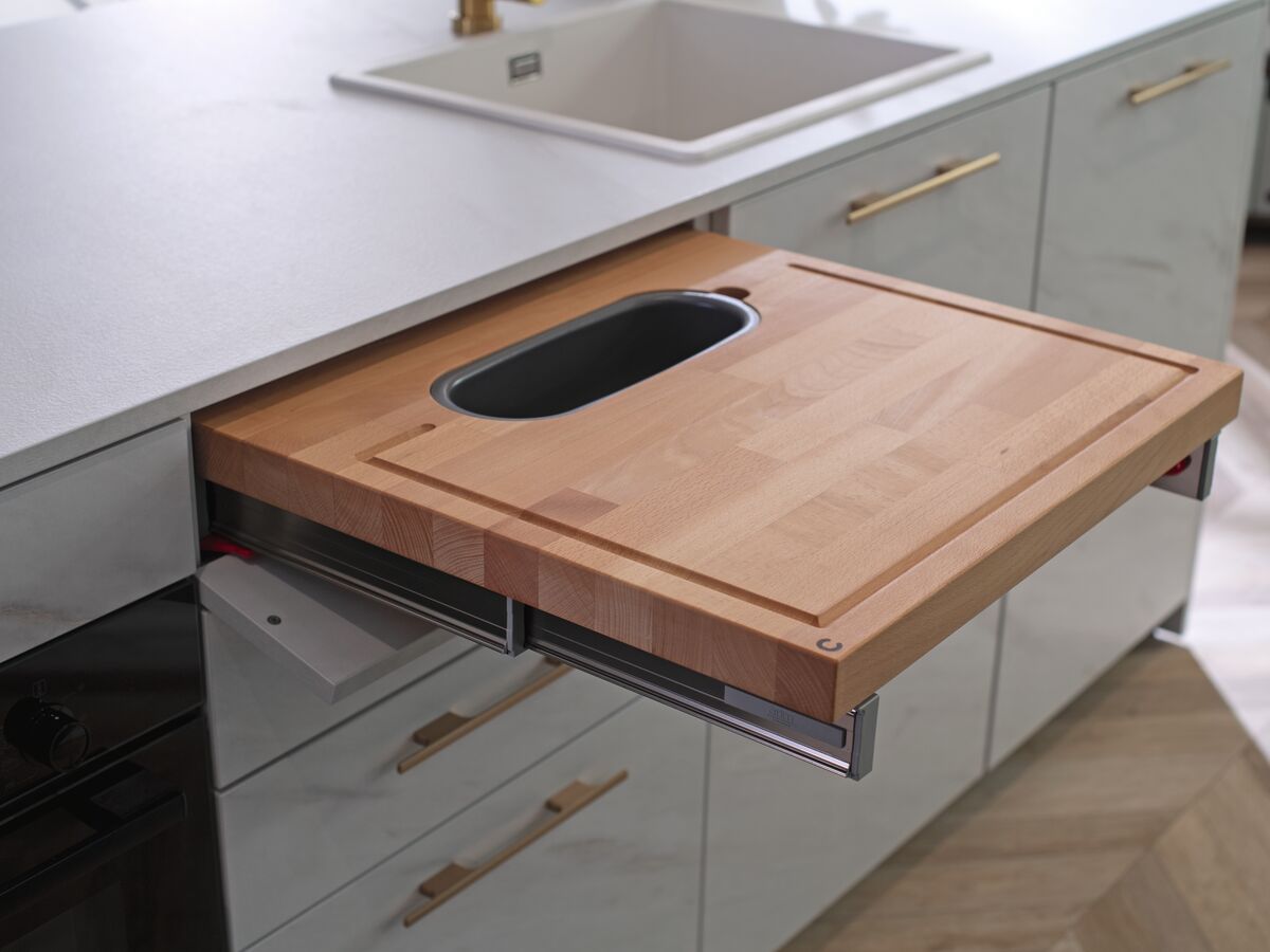 Parfaite pour les familles qui aiment aussi recevoir, cette cuisine trendy offre tous les meubles nécessaires pour ranger avec astuce et facilité les ustensiles et autres accessoires de cuisine, mais également le petit et le gros électroménager. Et ce, sans faire de concessions sur le style !