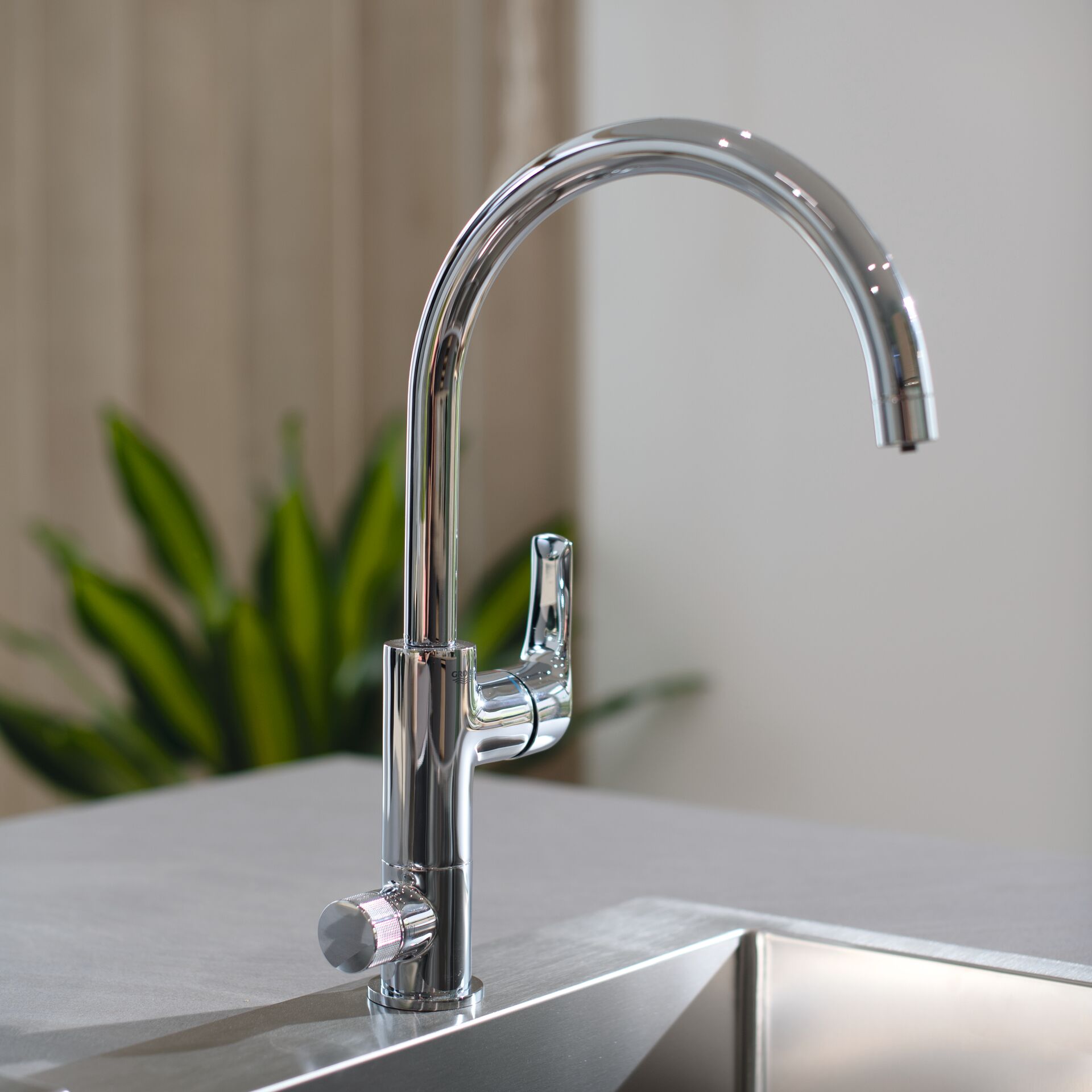 Doté d'une zone de rotation de 140° et d'un limiteur de température intégré, ce mitigeur bénéficie également de la technologie GROHE Zéro qui évite, grâce à des circuits d'eau séparés, que l'eau n'entre en contact avec des particules de plomb et de nickel. Sa finition chromé brillant GROHE StarLight, vous assurera toujours un brillant étincelant dans votre cuisine.