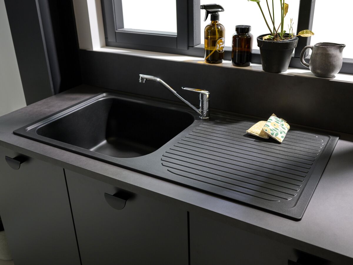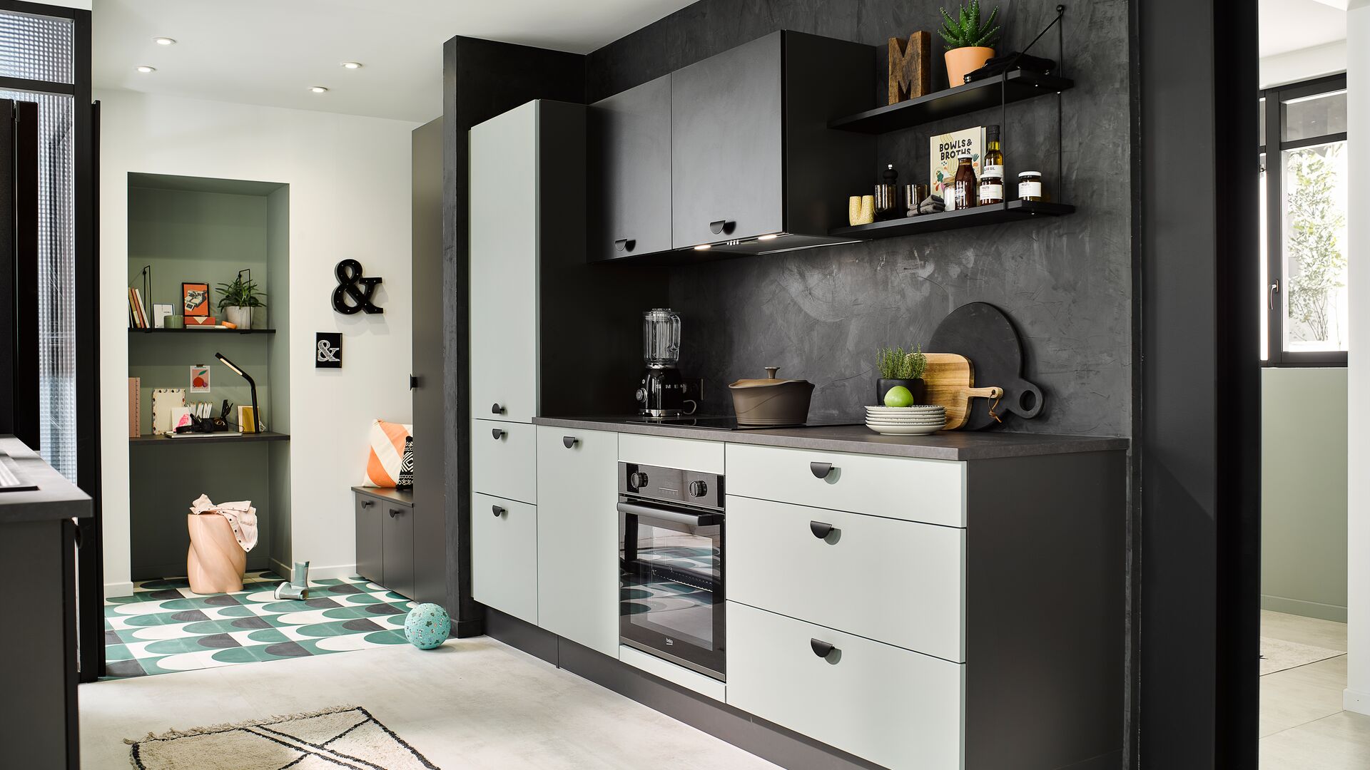 Détail de la cuisine équipée Moove Agave et noir