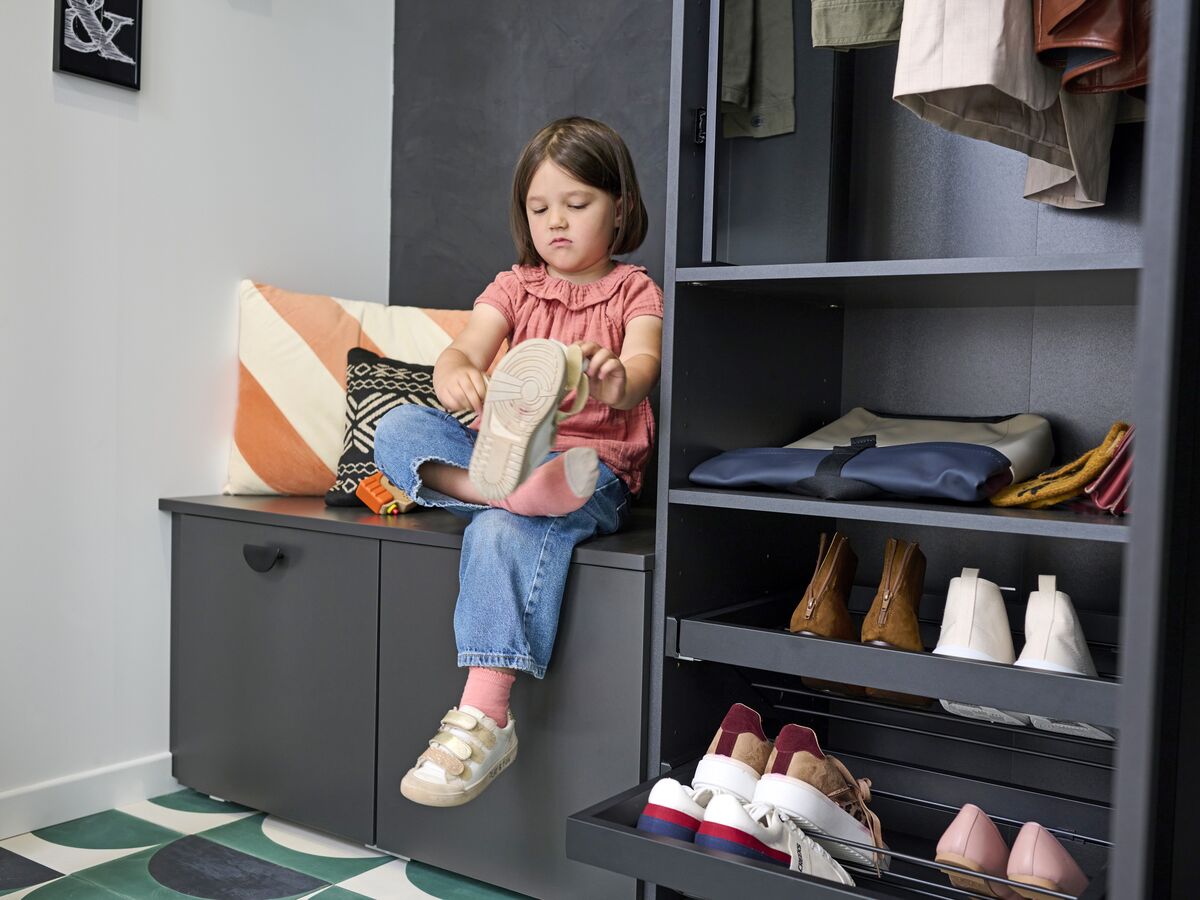Chaque détail a été pensé pour faciliter votre organisation : des espaces dédiés pour les petits accessoires aux solutions de rangement astucieuses pour les grands manteaux. Le coloris noir profond apporte une touche d'élégance tout en restant facile à coordonner avec votre décoration existante.