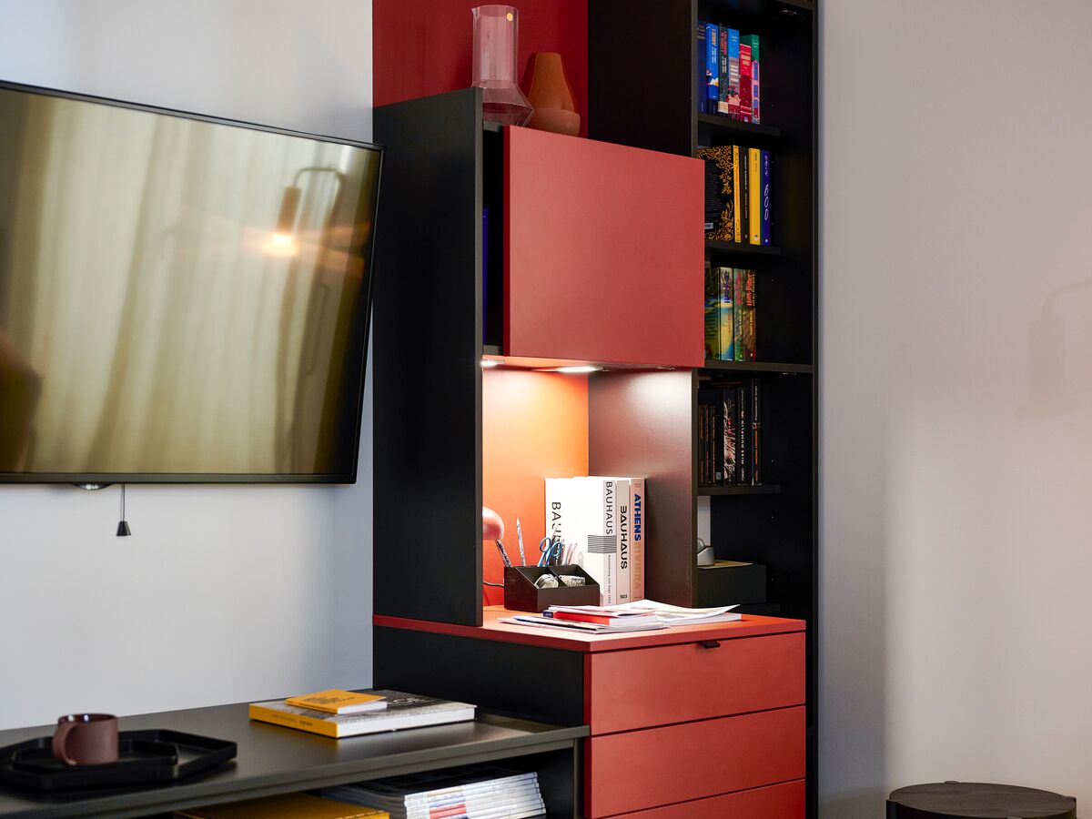 Avec son coloris Spicy & Black, ce meuble ne se contente pas d’être fonctionnel : il apporte une touche sophistiquée, presque architecturale, à votre pièce de vie. Il attire le regard sans jamais voler la vedette aux autres éléments de décoration, s'imposant comme un élément central, aussi utile qu’esthétique.