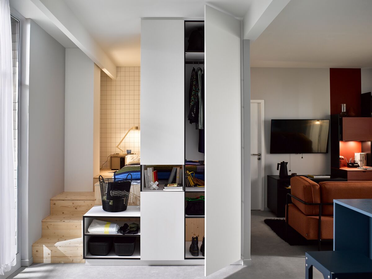 La clarté des tons et le design épuré rendent cette chambre extrêmement versatile. Elle laisse libre cours à la décoration et aux accessoires, permettant d’ajouter des touches de couleur, de matières naturelles ou de textiles aux motifs variés.Cette pièce devient ainsi un espace entièrement modulable, dans lequel vous pouvez ajouter tous les meubles de rangements que vous souhaitez, capable de refléter votre personnalité tout en conservant son caractère apaisant et intemporel.