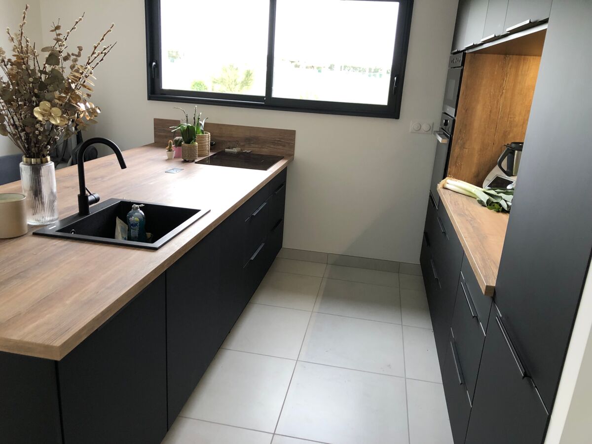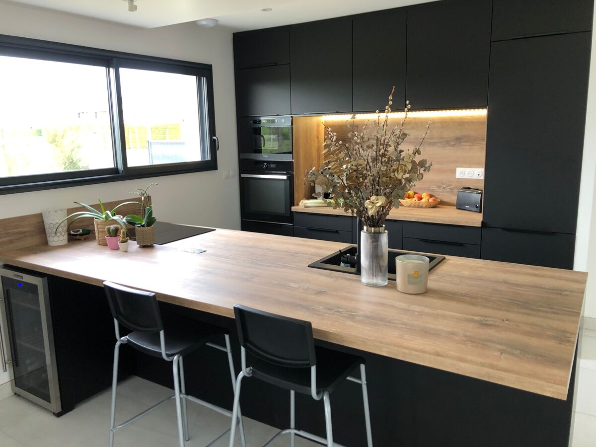 Cuisine équipée sur mesure Trend Chêne Honey et Label Métal Brossé